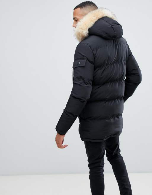 Siksilk puffer parka jacket with hotsell faux fur hood in black